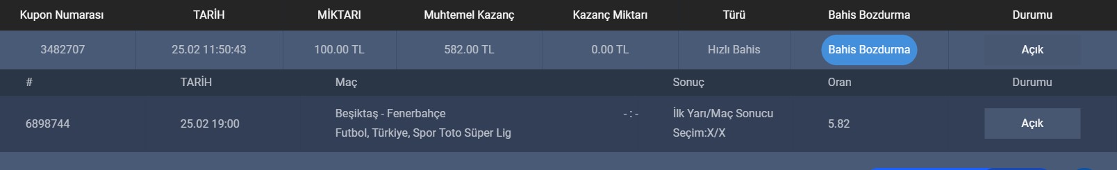 Fenerbahçe tarihinde ilk defa bir derbi maçına düşme hattındayken çıkıyormuş. Devlet Bahçeli düşene vurmak Beşiktaş’a yakışmaz o yüzden beraber bitmeli maç dedi. Ben de Devlet Bahçeli gibi düşünüp aşağıdaki kuponu yaptım Tümbet‘te. Sizin tahminleriniz neler?