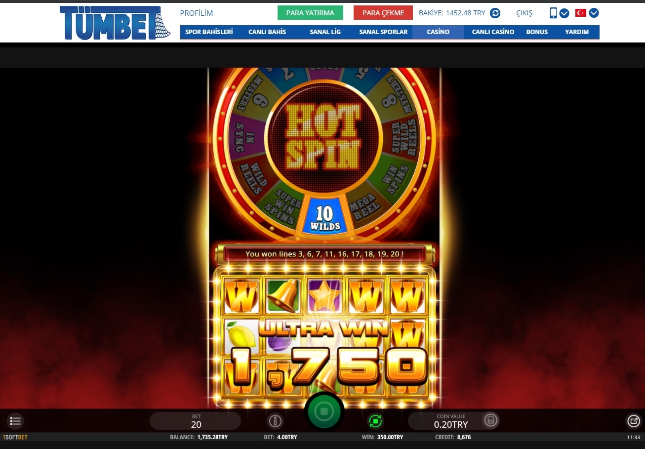 Bu gün Hot Spin bonus oyununa girmeden tek spinde 10 Wild verdi 4 TL’ye 350 TL kazanç. Pazartesi gününe güzel başlamak bu olsa gerek 🙂