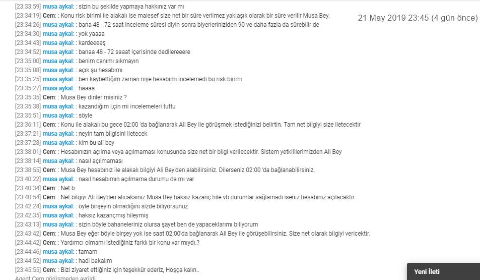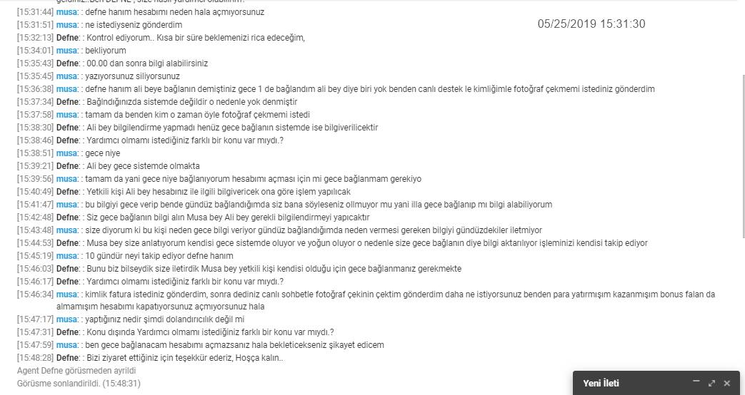 Canlı destek ekibi ile olan konuşmalarımızı ekte bulabilirsiniz.